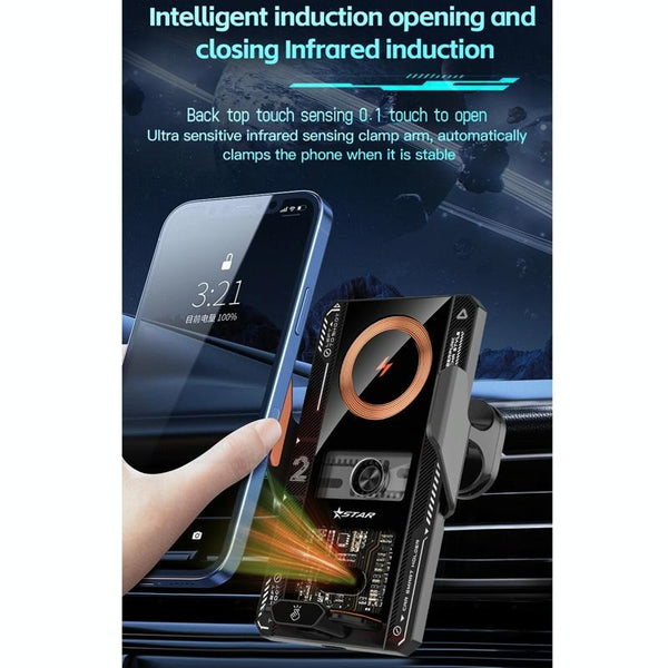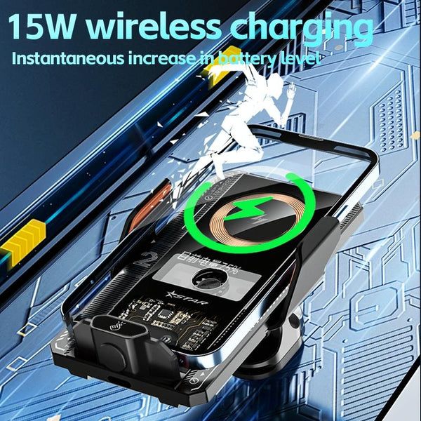 15W QI Protocol Wireless Car Charger Smart Induction Phone Holder(Black)