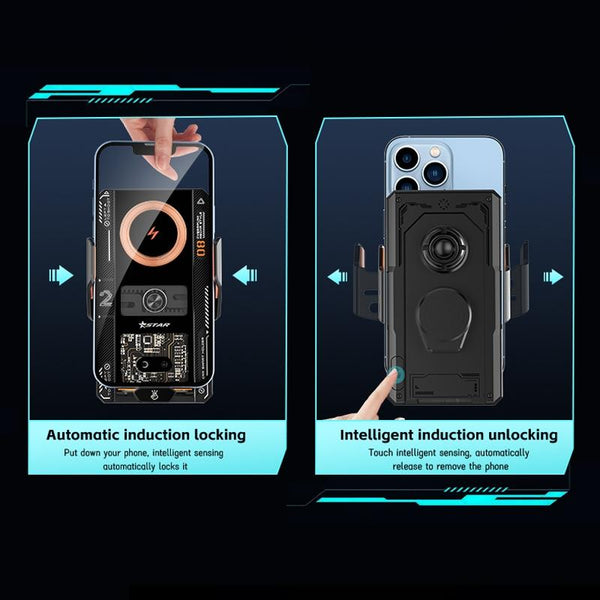 18. Touch sensor on the top of the back opens when touched in 0.1 seconds. Ultra-sensitive infrared sensor clamping arm automatically clamps the phone after it is placed firmly.
