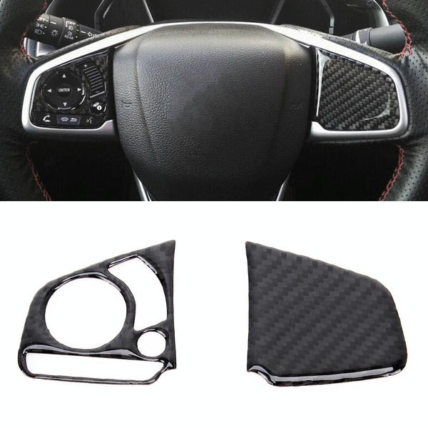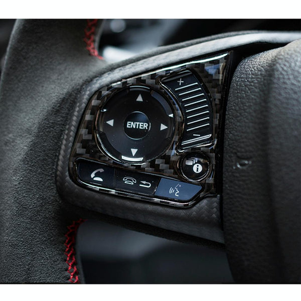 2 in 1 Carbon Fiber Steering Wheel Button Trim Interior DIY Sticker for Honda Civic 10th Gen 2016-2019(General)