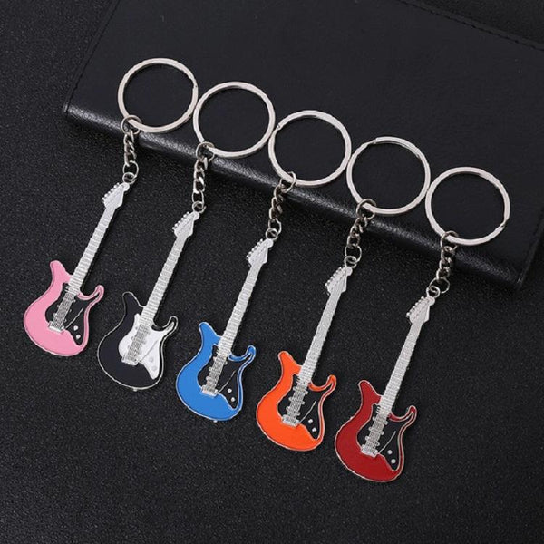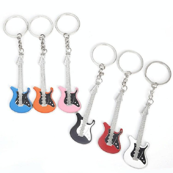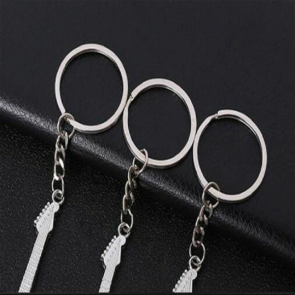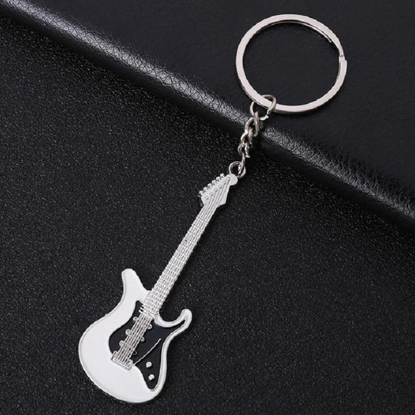 2 PCS Creative Guitar Keychain Metal Musical Instrument Pendant(White)
