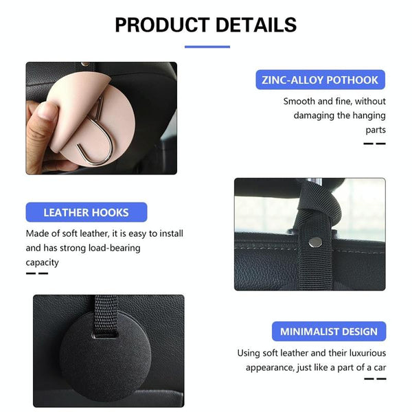 2pcs Concealed Car Seatback Leather Storage Hooks(Pink)