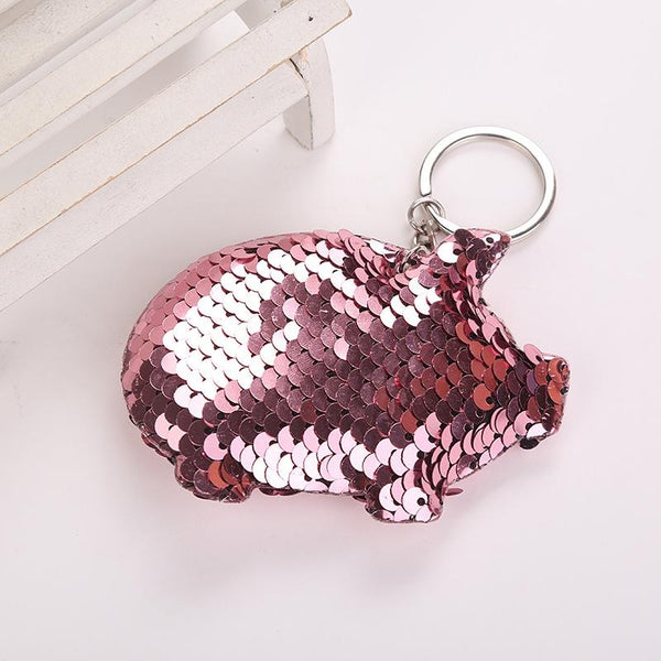 2PCS Cute Chaveiro Pig Keychain Glitter Pompom Sequins Key Chain Gifts for Women Llaveros Mujer Car Bag Accessories Key Ring(pink)