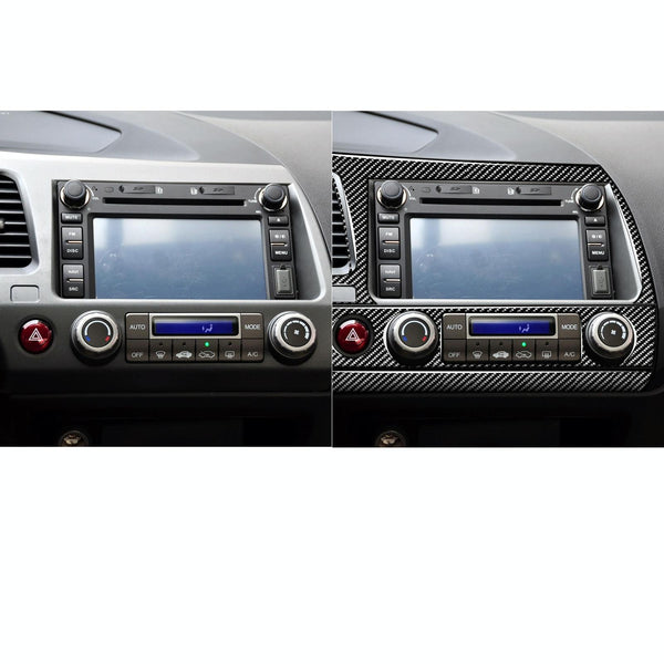 3 in 1 Car Carbon Fiber Central Control Navigation Panel Decorative Sticker for Honda Civic 8th Generation 2006-2011, Left Drive