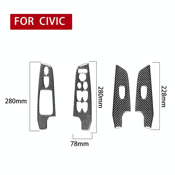 4 in 1 Car Carbon Fiber Glass Lift Panel Decorative Sticker for Honda Civic 8th Generation 2006-2011, Right Drive