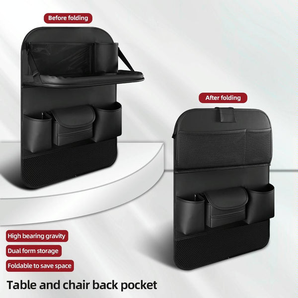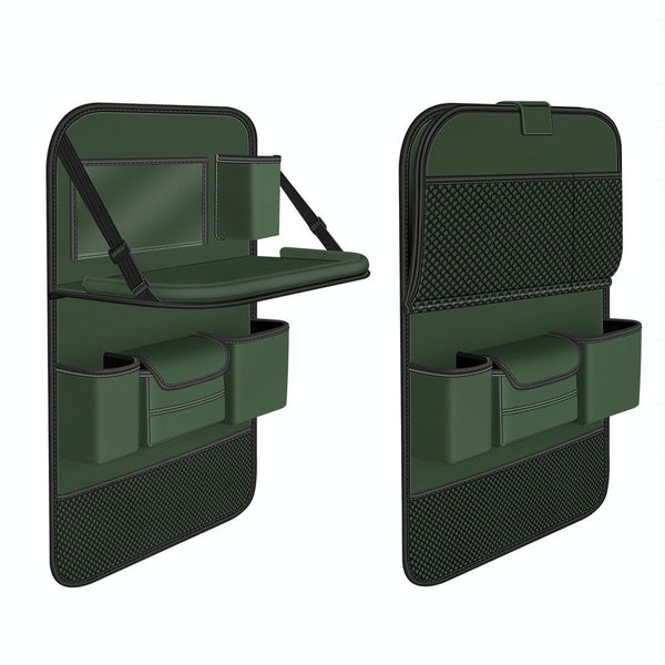 4041 Napa Texture Leather Car Seat Back Storage Bag Folding Dining Table(Olive Green)