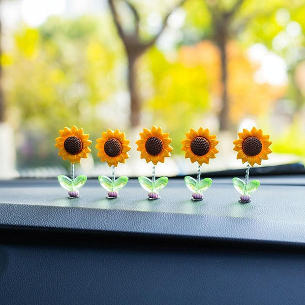 5pcs /Set Cute Sunflower Car Ornament Car Center Console Shaking Flowers Decoration, Style: A Model Transparent Leaves