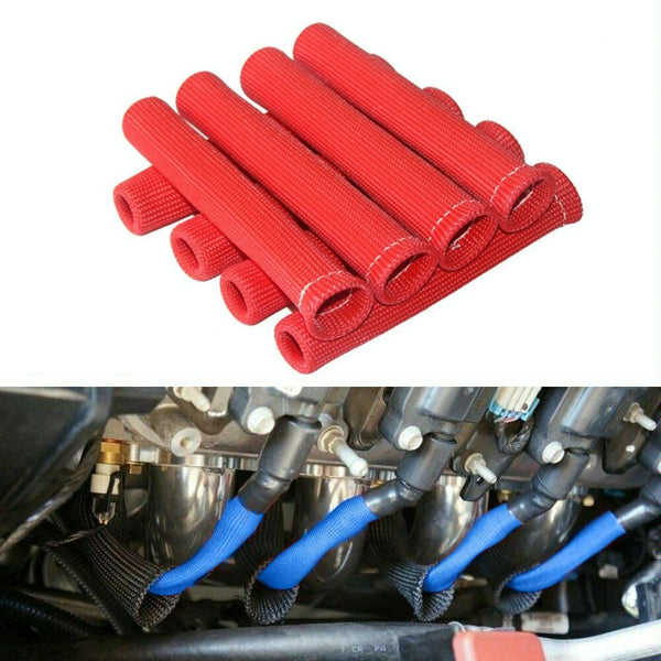 8 PCS / Set High-Temperature Car Spark Plug Protective Cover Spark Plug Heat Shield(Red)