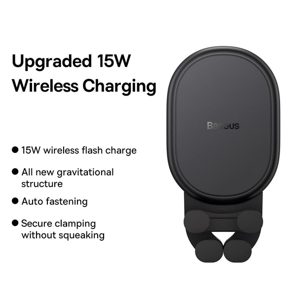 Baseus 15W Stable Gravitational Wireless Charging Car Mount Pro Air Outlet Version(Black)