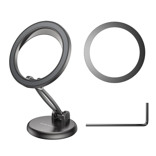 BOROFONE BH114 Star Metal Ring Magnetic Car Center Console Phone Holder(Metal Grey)