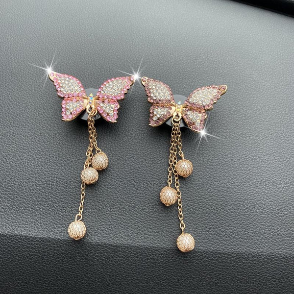 Butterfly Tassel Pearl Diamond Car Air Vent Aromatherapy Clip(Purple)