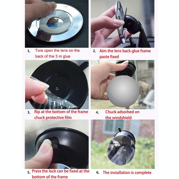 8. Visor frame base and suckers base to secure the mirror. Sit in the drivers seat in a normal driving position, with rotates adjust the mirror and directly through the mirror to give you good view of the infant