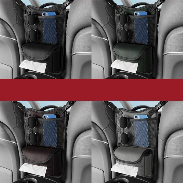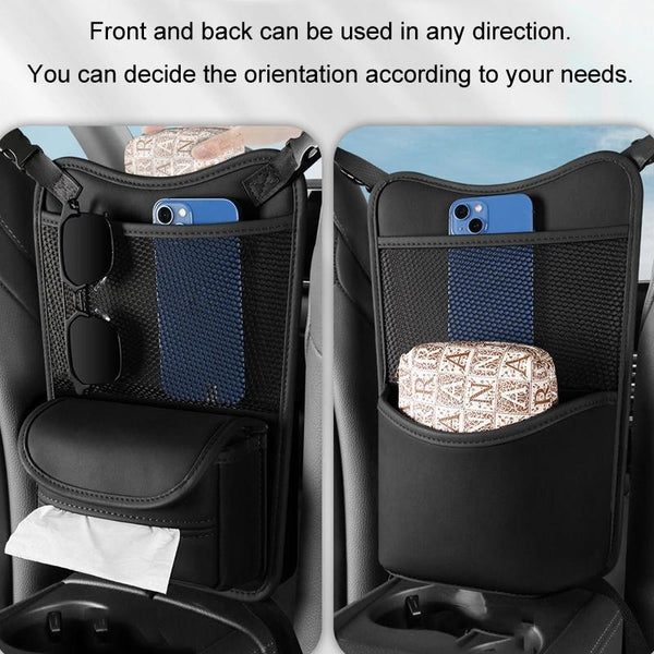 Car Between Seats Organizer Multifunctional Storage Bag Front And Back Dual Usage Tissue Box(Black)