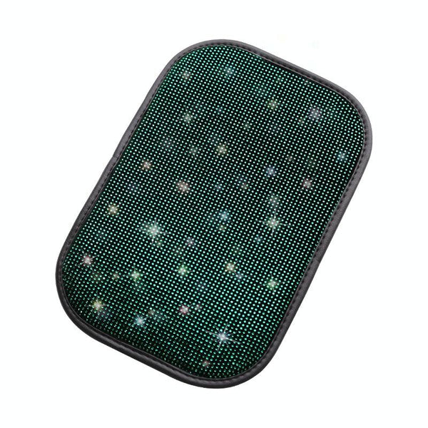 Car Diamond Armrest Box Cushion Personalized Car Decorations Dirt And Non-Slip(Black Green Diamond)