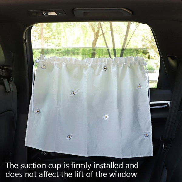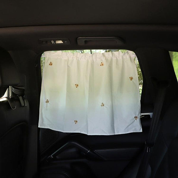 Car Embroidery Curtain Sunshade Cartoon Cotton Suction Cup Curtain Car Sunscreen Insulation Covering Curtain(Bear)