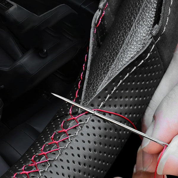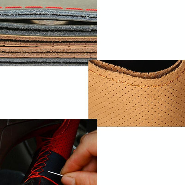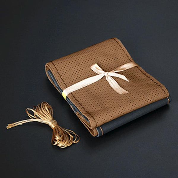 Car Genuine Leather Hand-stitched Adaptation Steering Wheel Cover, For Steering Wheel Size 37-38cm(Brown)