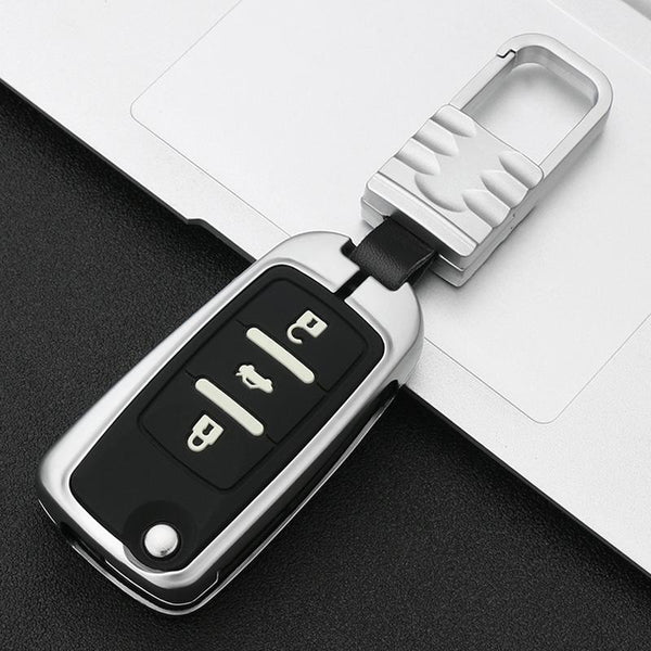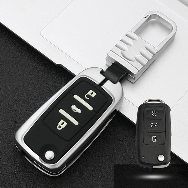 Car Luminous All-inclusive Zinc Alloy Key Protective Case Key Shell for Volkswagen A Style Folding 3-button(Silver)