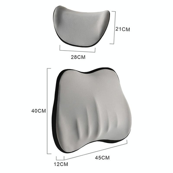 11. Size: headrest about 21 x 28 cm, lumbar pad about 45 x 40 x 12 cm