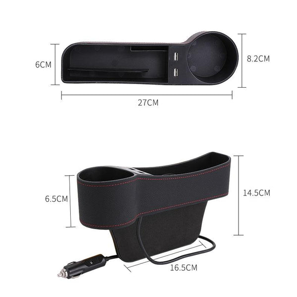 Car Multi-functional Co-pilot Seat Console PU Leather Box Cigarette Lighter Charging Pocket Cup Holder Seat Gap Side Storage Box(Coffee)