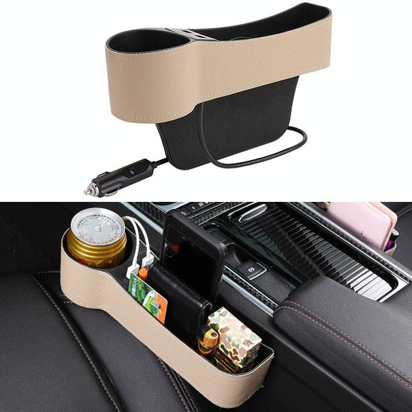 Car Multi-functional Driver Seat Console PU Leather Box Cigarette Lighter Charging Pocket Cup Holder Seat Gap Side Storage Box(Beige)