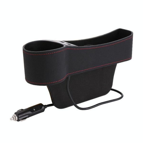 Car Multi-functional Driver Seat Console PU Leather Box Cigarette Lighter Charging Pocket Cup Holder Seat Gap Side Storage Box(Black)