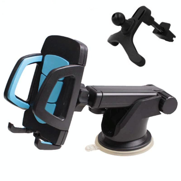 Car Phone Holder Car Air Outlet Mobile Phone Holder Suction Cup Navigation Instrument Panel General, Style:3 in 1(Blue)