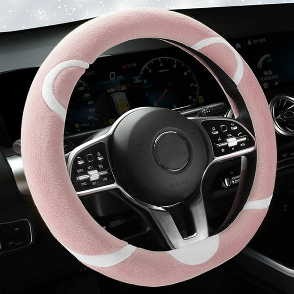 Car Steering Wheel Cartoon Short Fluff Handle Cover, Size: 38cm(Pink D Shape)