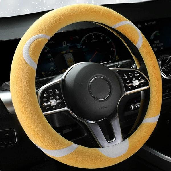 Car Steering Wheel Cartoon Short Fluff Handle Cover, Size: 38cm(Yellow Round)
