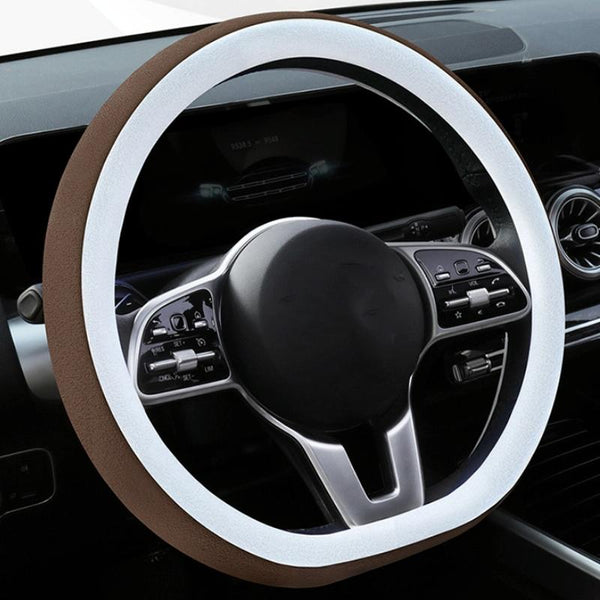 Car Steering Wheel Short Plush Winter Non-slip Grip Cover, Size: 38cm(D Shaped Brown)