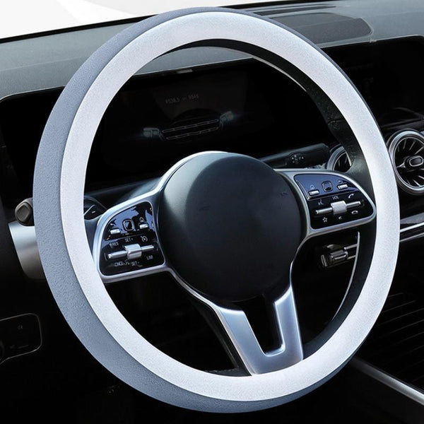 Car Steering Wheel Short Plush Winter Non-slip Grip Cover, Size: 38cm(Round Silver Gray)