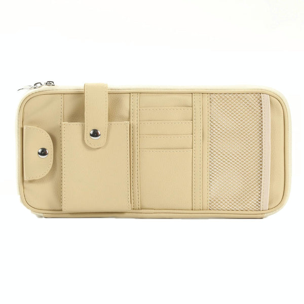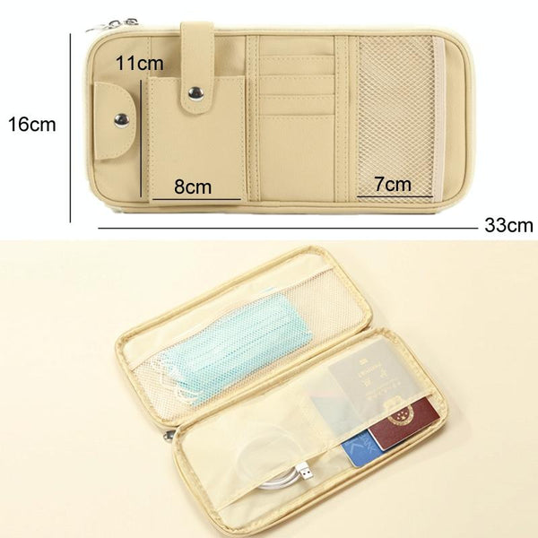 Car Sun Visor Multifunctional Storage Bag Glasses ID Holder(Beige)