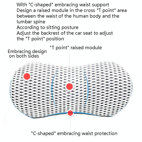 Car Supplies Lumbar Support Memory Foam Car Backrest Lumbar Cushion Seat Cushion Lumbar Pillow, Colour: 4D Grid Light Gray