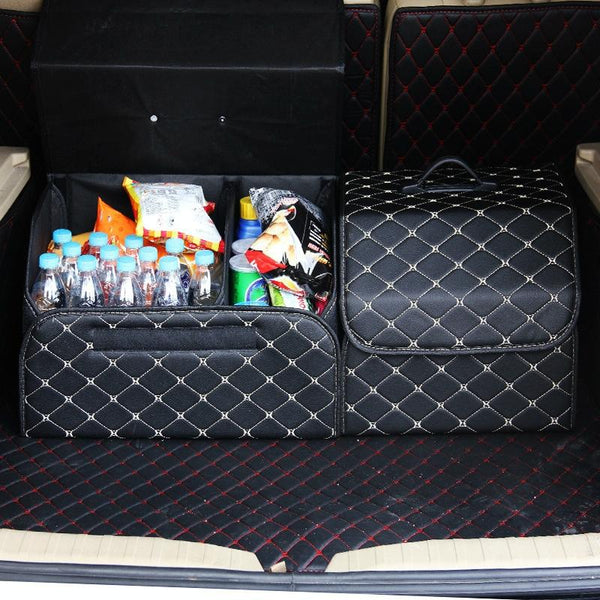 Car Trunk Foldable Storage Box, Checkered Middle Size: 40 x 32 x 30cm (Beige)