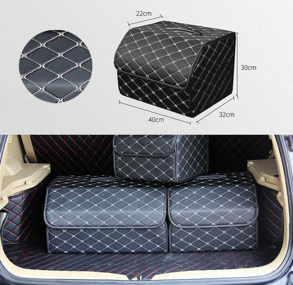 Car Trunk Foldable Storage Box, Rhombic Grid Middle Size: 40 x 32 x 30cm (Beige)