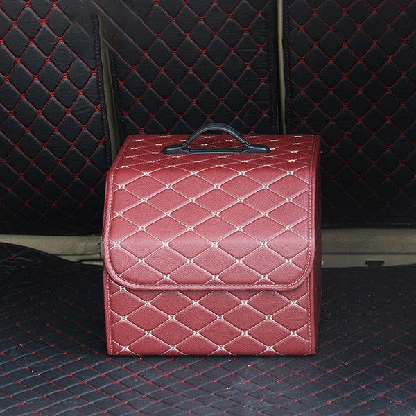 Car Trunk Foldable Storage Box, Rhombic Grid Small Size: 33 x 32 x 30cm (Wine Red)