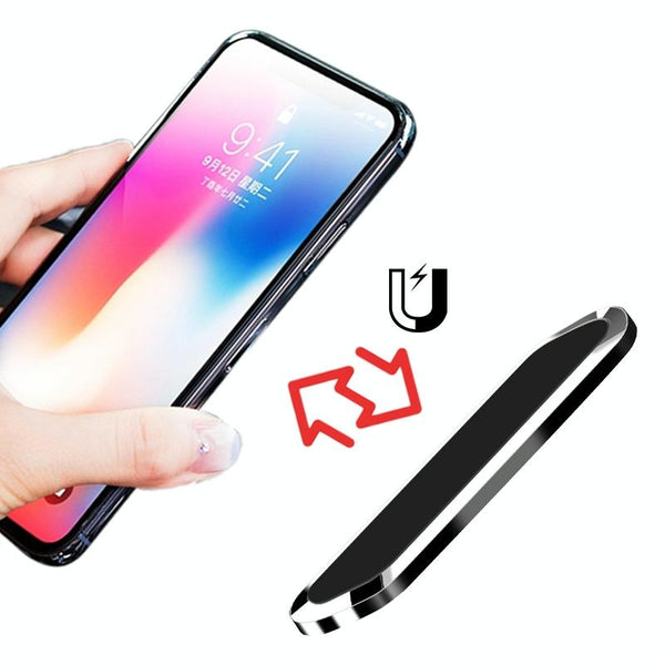 F601 4 PCS One Word Long Magnet Car Bracket Car Navigation Lazy Magnetic Metal Bracket(Rounded Silver)