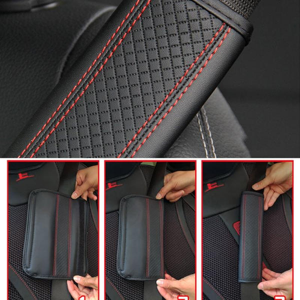Fiber Leather Embossed Car Seat Belt Shoulder Cover Protector 6.5X23cm(Pink)
