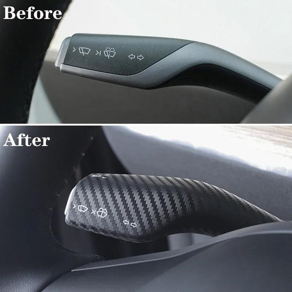 For Tesla Model 3 / Y 2pcs/Set Car Turn Signal Lever Carbon Fiber Pattern Protective Cover(Matt Black)