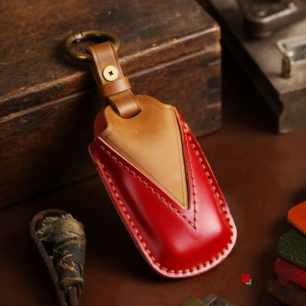 For Toyota Car Cowhide Leather Key Protective Cover Key Case, Two Keys Version(Red)