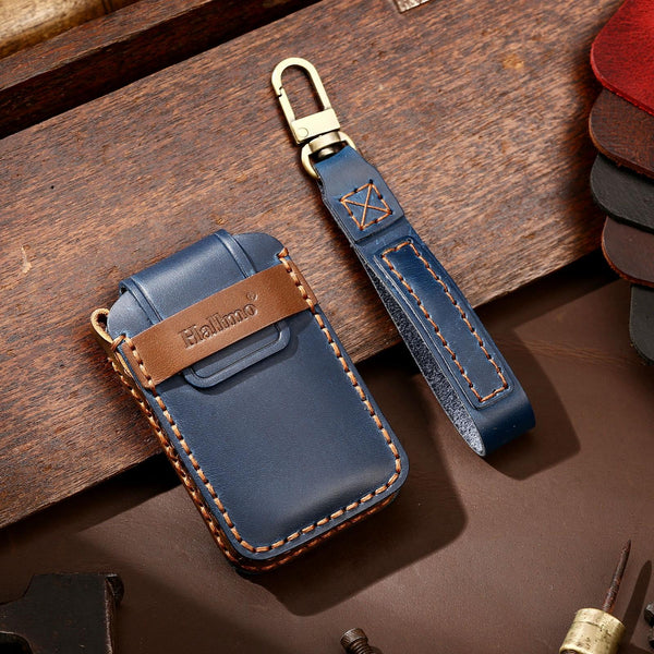 Hallmo Car Cowhide Leather Key Protective Cover Key Case for New Volvo(Blue)