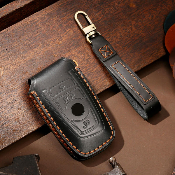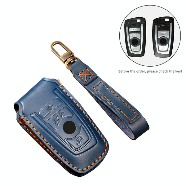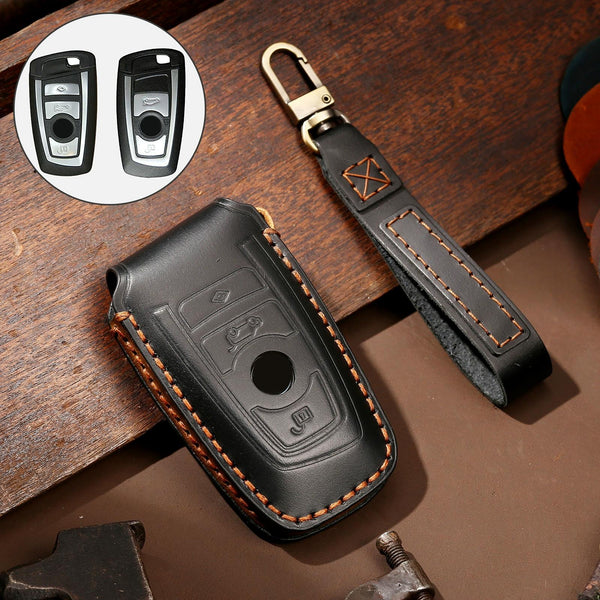 Hallmo Car Cowhide Leather Key Protective Cover Key Case for Old BMW(Black)