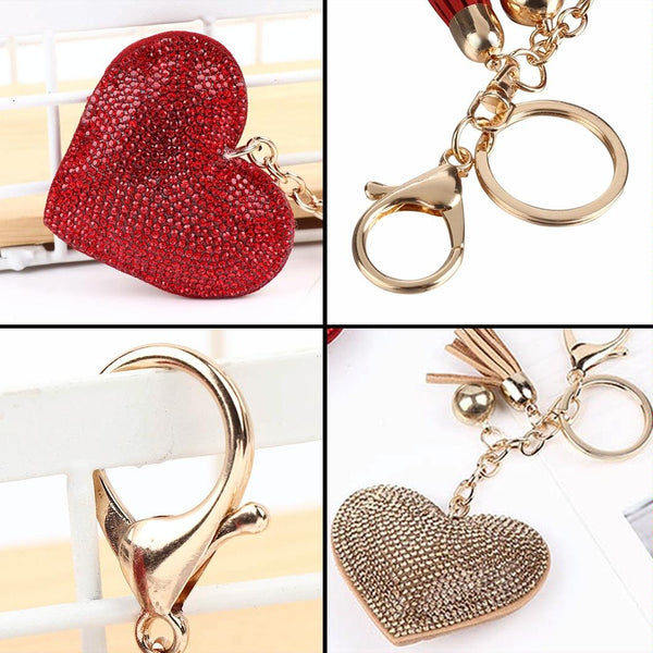 Heart Keychain Leather Tassel Gold Key Holder Metal Crystal Key Chain Keyring Charm Bag Auto Pendant Gift(gold)
