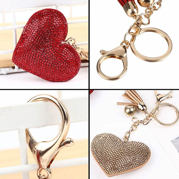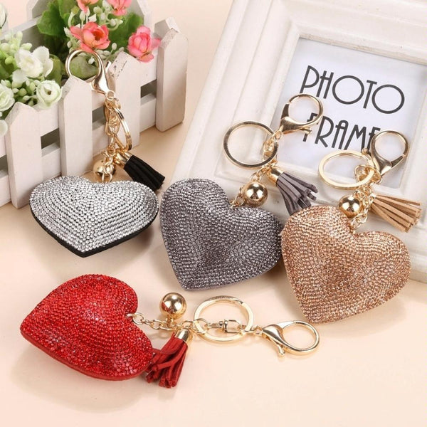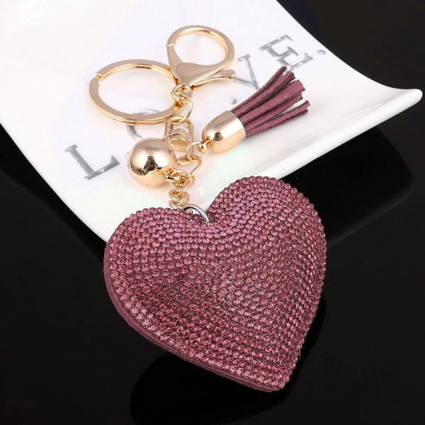Heart Keychain Leather Tassel Gold Key Holder Metal Crystal Key Chain Keyring Charm Bag Auto Pendant Gift(purple)