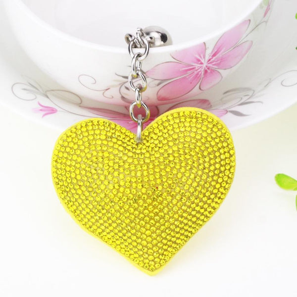 Heart Keychain Leather Tassel Gold Key Holder Metal Crystal Key Chain Keyring Charm Bag Auto Pendant Gift(yellow)