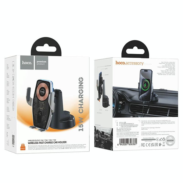 hoco HW27 Traveler Infrared RGB Wireless Fast Charging Car Center Console Holder(Black)