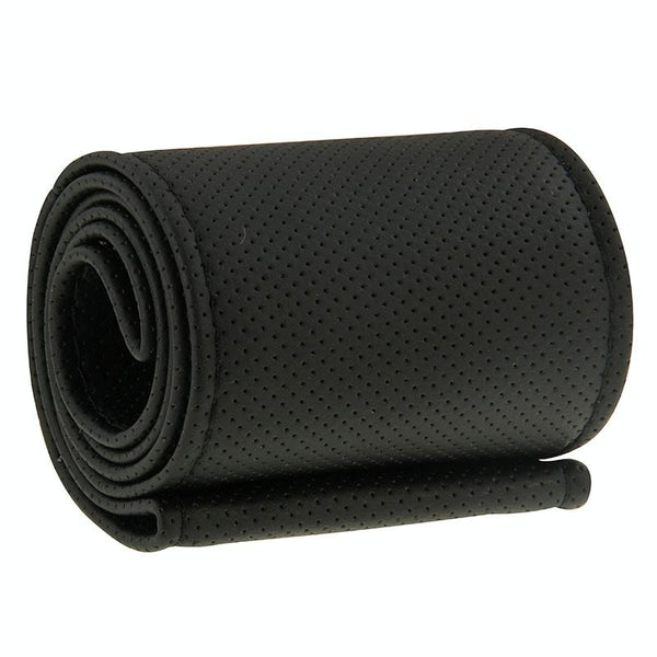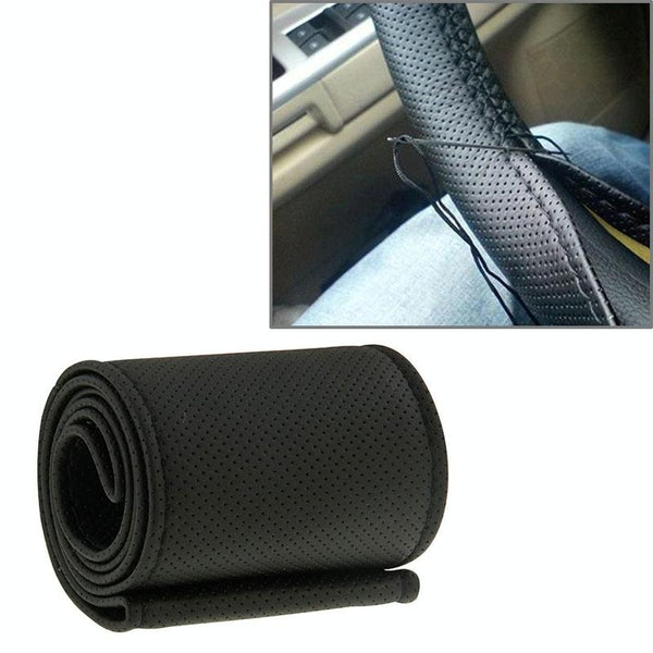 Leather Steering Wheel Cover With Needle and Thread, Size: 54x10.5cm (Black)