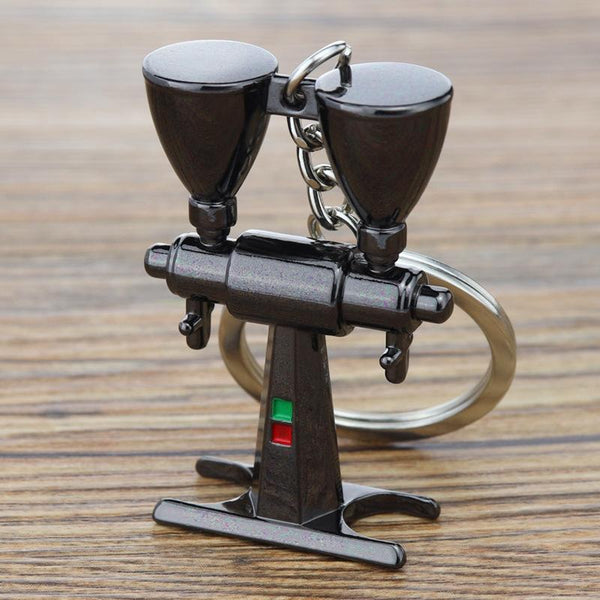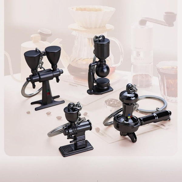 Mini Metal Keychain Coffee Utensils Decorative Pendant, Style: Dual-Head Bean Grinder Black
