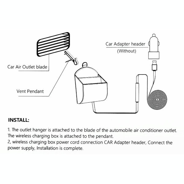 2. The wireless charging box power cord connects the car cigarette lighter charger, connects the power supply, and the installation is completed.
