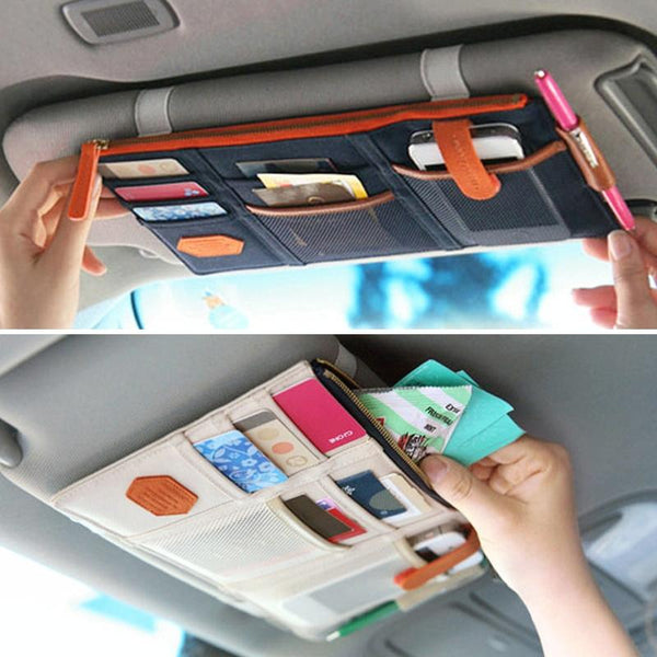 Multi-functional Auto Car Sun Visor Sunglass Holder Card Storage Holder Inner Pouch Bag (Black)