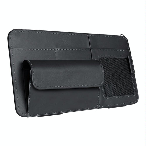 Multi-functional Car Sunshade Sunglasses ID Ticket Storage Bag Car Sun Visor Eyeglasses Case(Black)