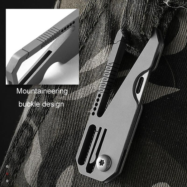 Multifunctional Titanium Keychain Outdoor Portable Defense Mini Folding Knife, Style: With Steel Ring
